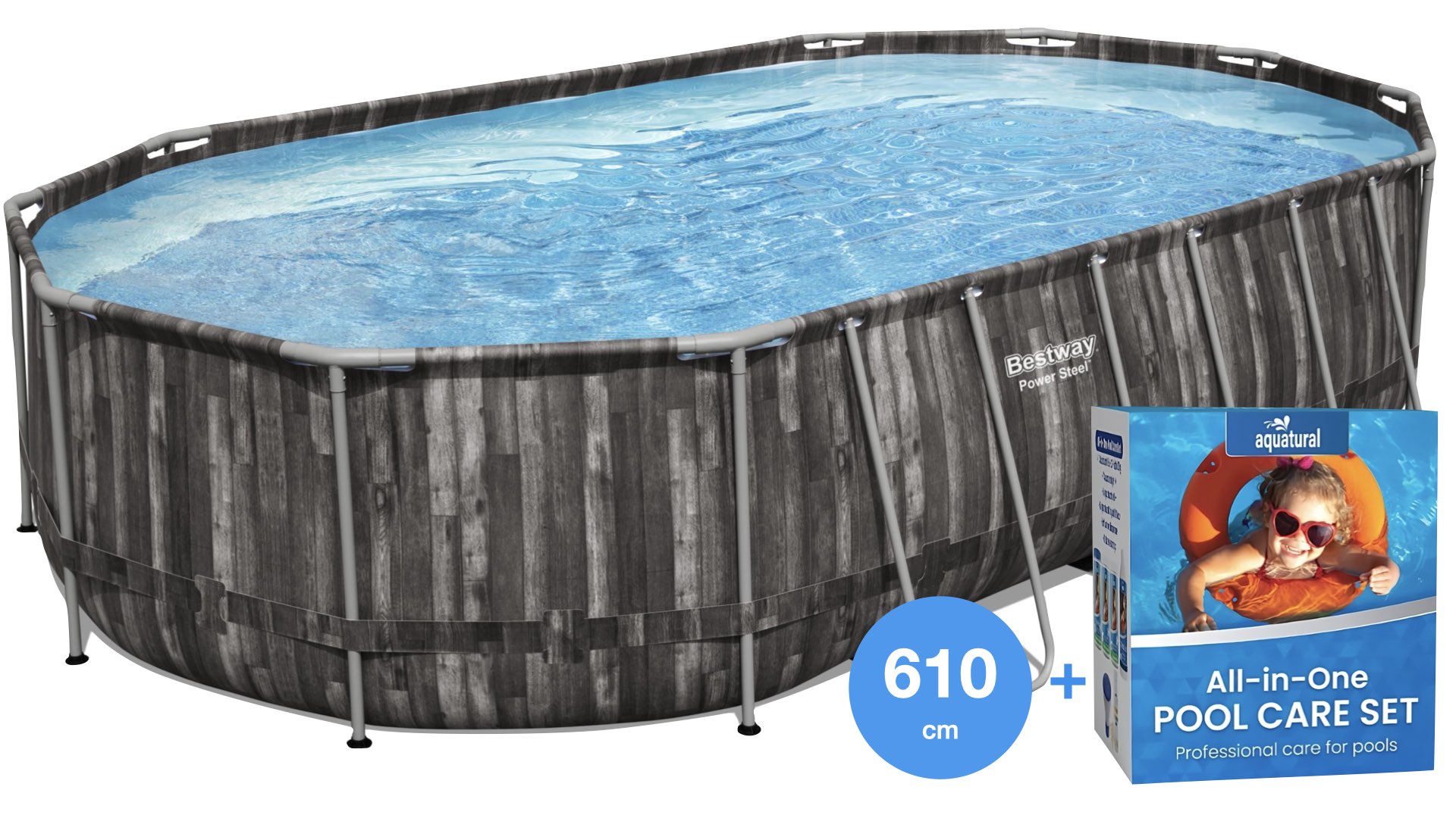 Plons in het verfrissende plezier van het Bestway Power Steel Zwembad 610 cm! Met zijn ovale vorm en groot formaat is het perfect voor het hele gezin. Inclusief cartridge filterpomp, afdekzeil en zwembadtrap. Koop het nu en geniet van zorgeloze zomers!