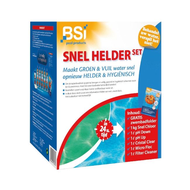 Geniet van kristalhelder zwembadwater met de BSI Snel Helder Set! Met deze set heb je alles in huis voor een perfect onderhouden zwembad. Bestel nu en geniet van een heerlijke duik!