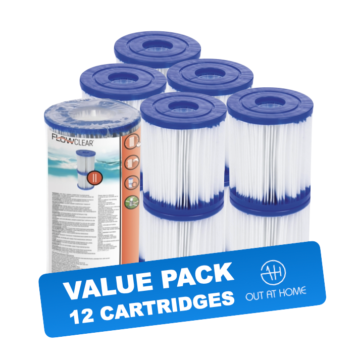 Houd je zwembad schoon en gezond met de VALUE PACK 12 st. Bestway Flowclear Filtercartridge Type II! Voorkom pompstoringen en geniet van probleemloos plezier in het water
